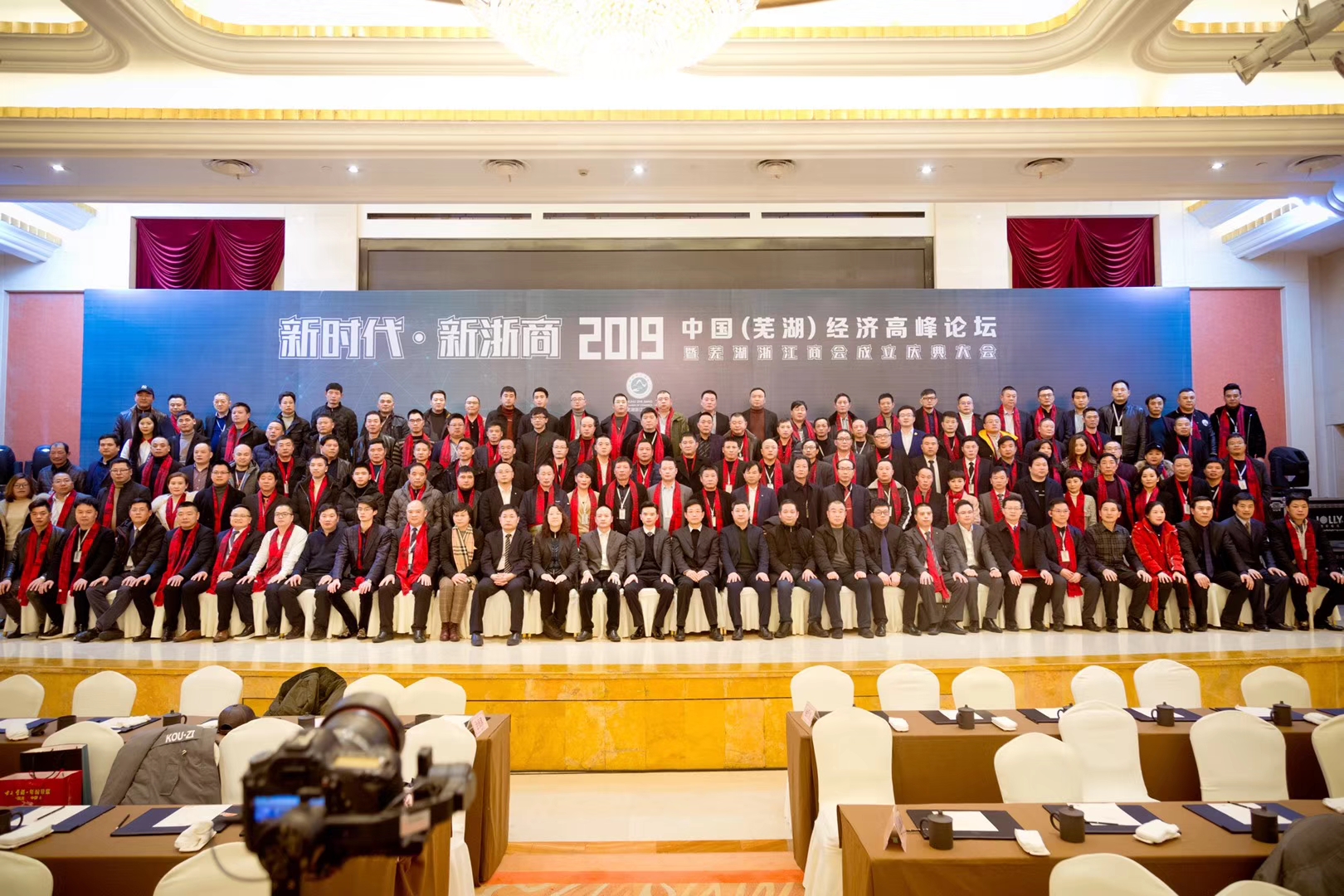 “新时代·新浙商”2019中国(芜湖)经济高峰论坛暨芜湖浙江商会成立庆典大会于1月9日在芜湖市汉爵阳明大酒店举办,此次论坛由经济日报中国经济信息指导,浙商总会、芜湖市工商联主办,芜湖浙江商会承办。